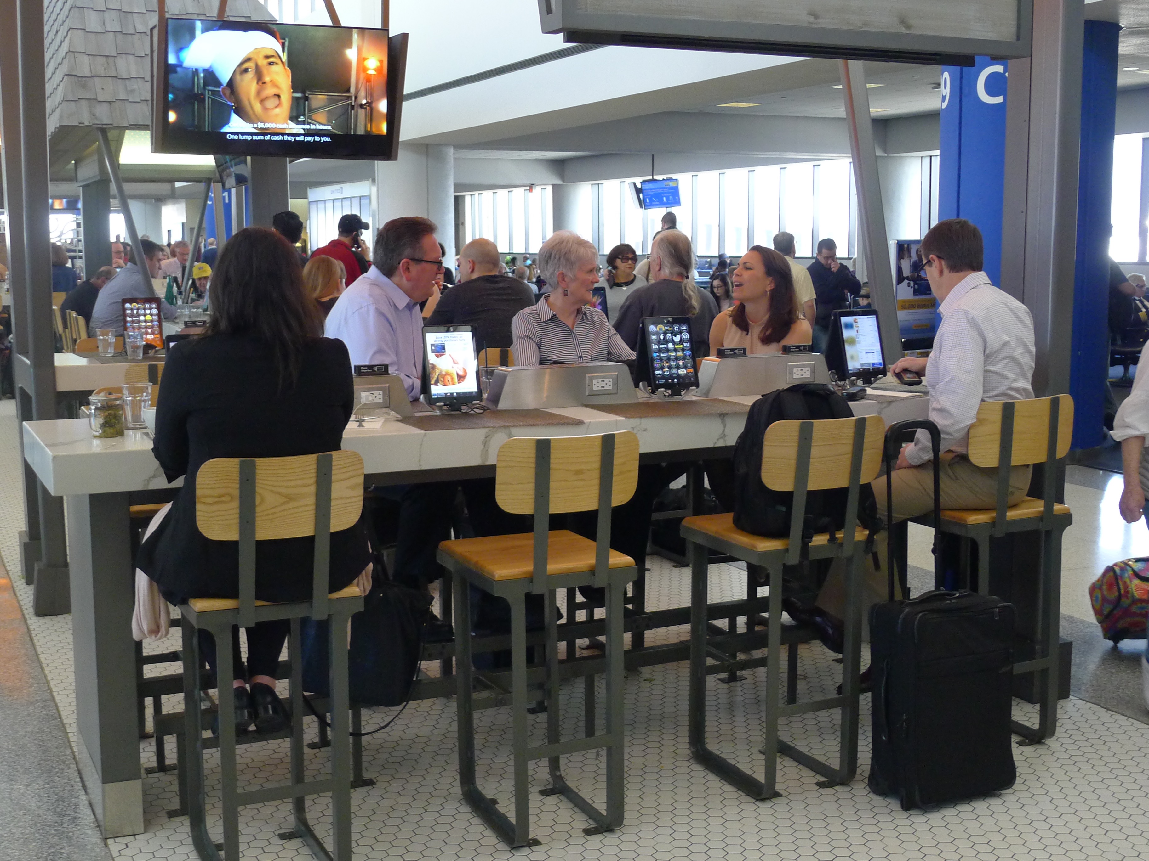 And, by the way, Newark (below) is a fantastic airport. It’s open, airy and inviting, and several dining areas provide tablets or iPads for every customer to order food and drinks.
