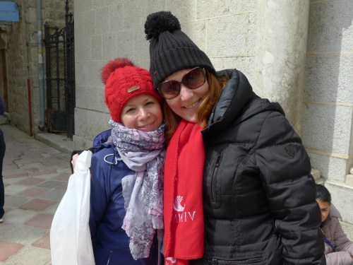 This wasn’t taken in Greece — Montenegro, I believe — but I had to run it. Julia (left) was the shore excursion manager on our Viking cruise, and Jenna was our indefatigable cruise director. (They bleed Viking red!) This was a rare occasion when they got a few free hours and did some touring of their own.