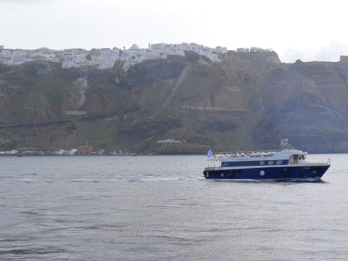 One of our best discoveries was the Santo Winery on Santorini. This is the winery’s patio (not a giant Bingo board), in a state of preparedness for high tourist season, which begins later this month. (Patty handed her phone to a Californian who offered to shoot the picture, and, voila, he produced a winner.)