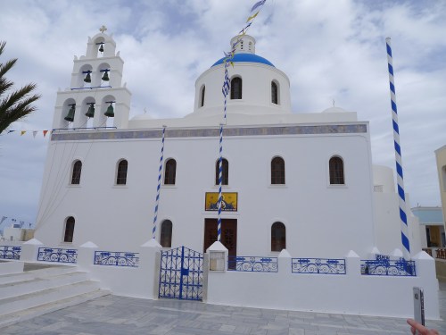 The domes of many Greek Orthodox churches are painted sky blue, symbolizing their reach to the heavens.