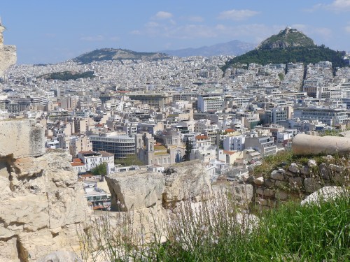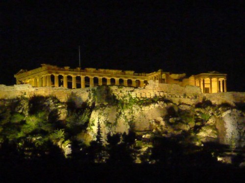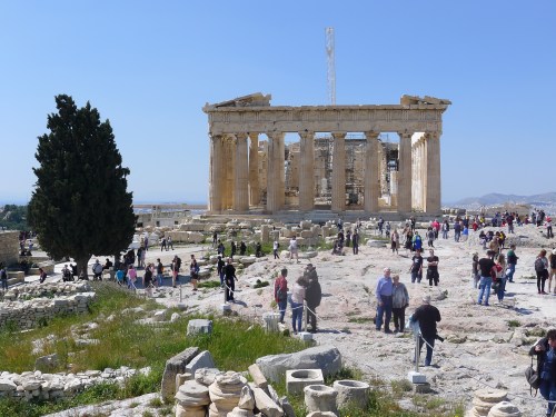 This is another famous Acropolis building, the Erectheion, highlighted by statues of the Caryatids, six women who “hold up” the marble roof of the building’s northern porch.