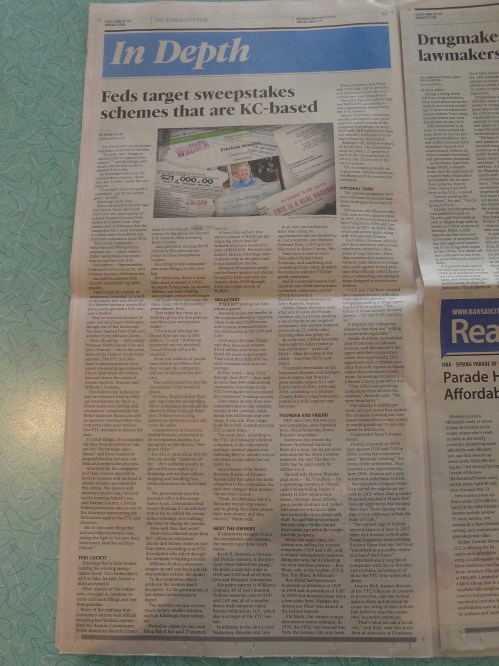 He obviously devoted many hours to a story on Page 10-A titled “Feds target sweepstakes schemes that are KC-based.”