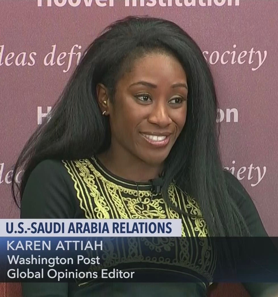 Attiah is the global opinions editor of The Washington Post. In that role she oversaw the work of Jamal Khashoggi, the Washington Post contributing writer who was murdered and dismembered in the Saudi consulate in Istanbul two months ago.