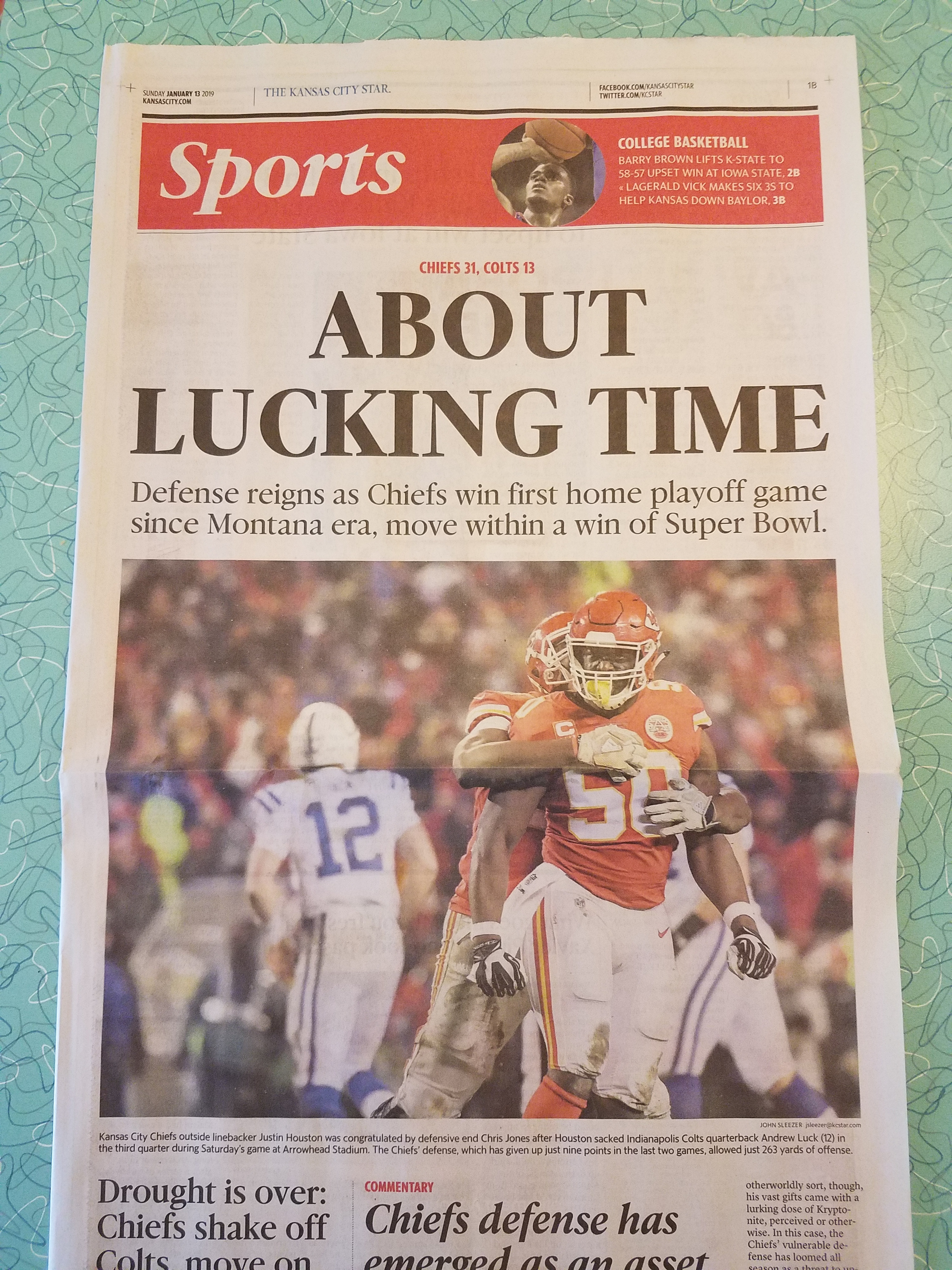 That’s a good one, Bob, but the beauty of “About lucking time” is it captures Chiefs’ fans 25 years of frustration.