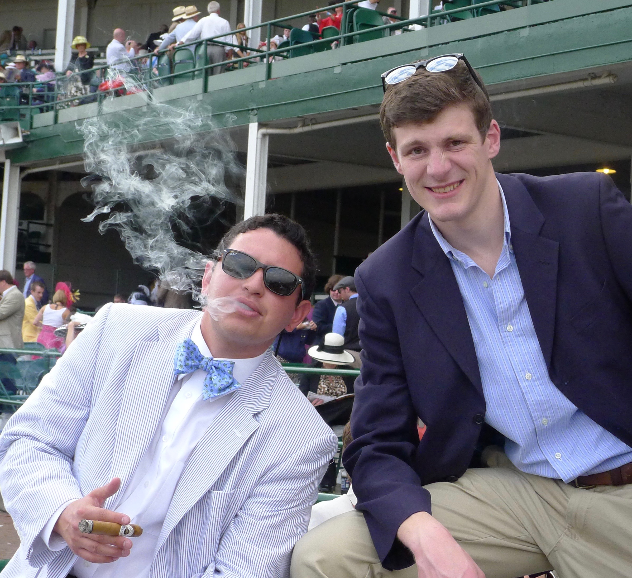 Here are Brooks and Patty at Derby 137 in 2011. It was the only year all four of us went to a Derby. I bought five single tickets — two in the same box, the others scattered — outside the track, and we rotated in and out of the box all day.