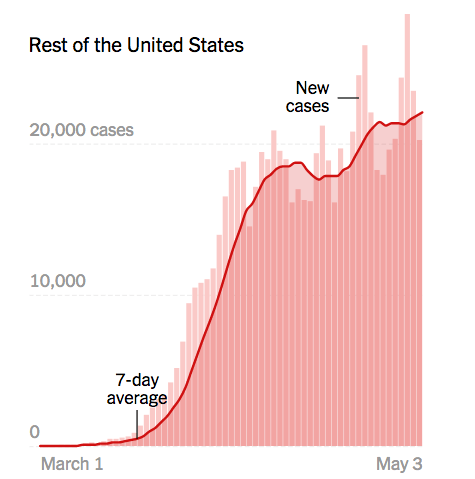 But, my God, I fear the price. Nationwide, we are now at more than 71,000 deaths officially, and the real number is probably a lot higher. We’ve all heard the predictions of a much higher incidence of new cases and additional deaths, and with this stampede to reopen it looks to me like we could easily be at 140,000 deaths by the end of June of middle of July.